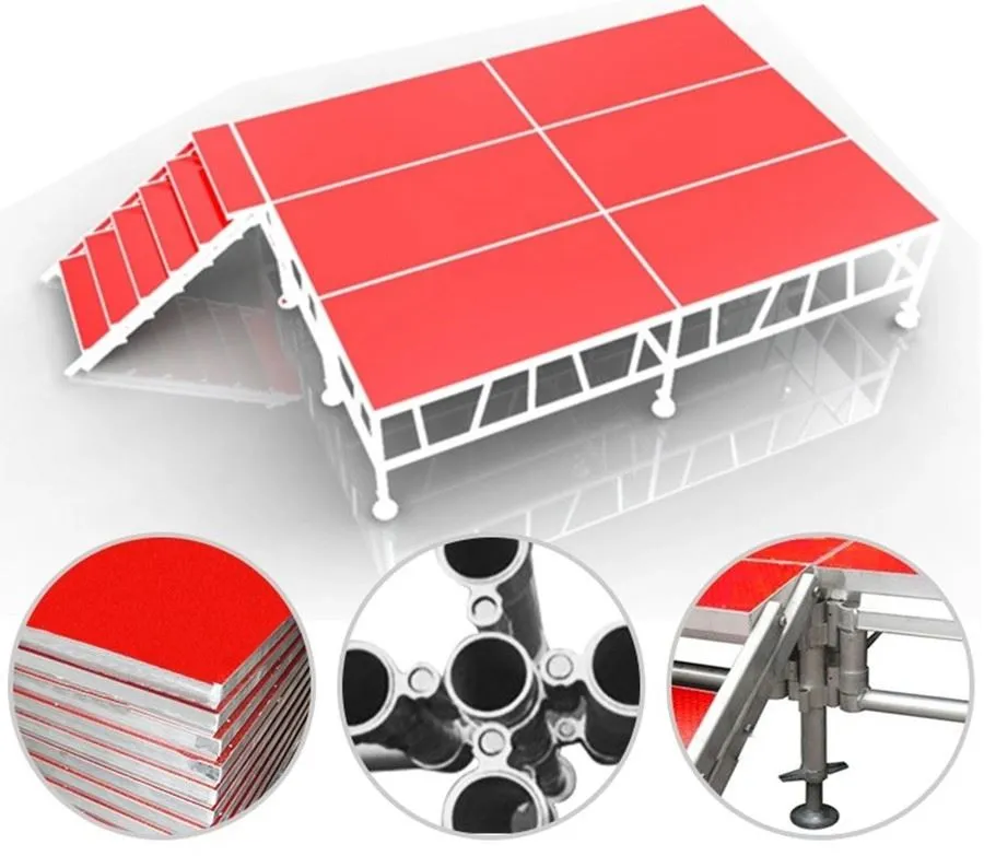 This 4×8 Aluminium Modular Stage is cheap and lightweight and popular for concert, school, churches, music, band, DJ, Dramatic performance,ect.