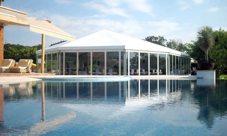 Unlike traditional rectangular tents, the hexagonal structure offers a 360-degree panoramic view. This geometric design creates a more intimate and visually striking atmosphere for your guests.